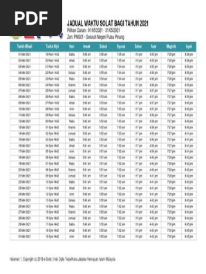 Waktu solat mingguan dan jadual waktu solat bulanan. Dibawah ini adalah jadual waktu solat seluruh negeri Pulau Pinang waktu solat Penang untuk tahun 2021 bagi memudahkan anda untuk simpan dan rujuk.